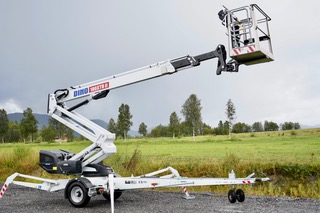En fleksibel og brukervennlig hengerlift med arbeidshøyde på opptil 18 meter og rekkevidde på 11 meter. Perfekt til arbeid i høyden som maling, vedlikehold, montering, beskjæring og fasadearbeid.
